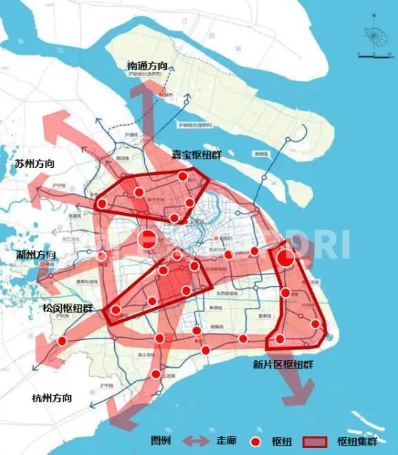 放大交通枢纽聚流辐射作用,重点是通过优化枢纽体系发展形态来支撑空间新格局,强化建设模式创新,确立综合交通枢纽地位,进而推动站城融合,促进枢纽经济发展。
