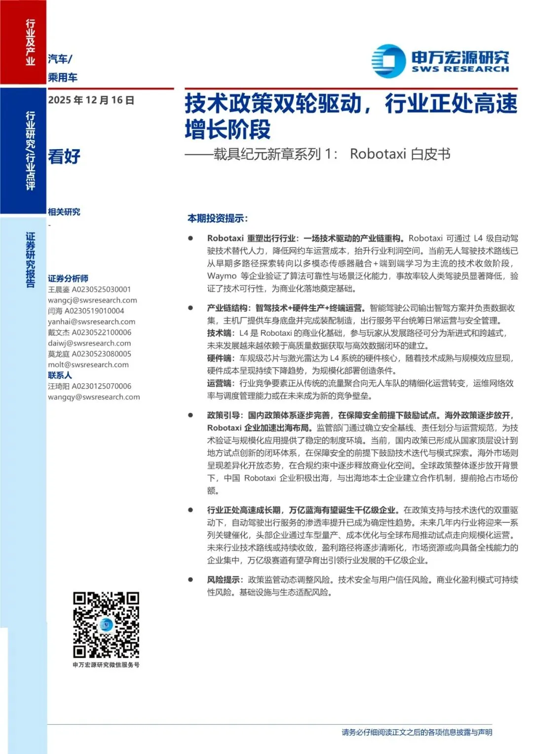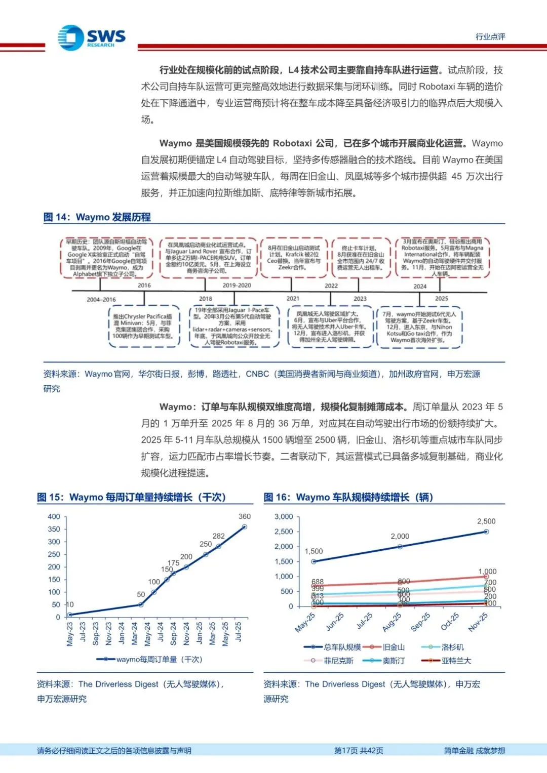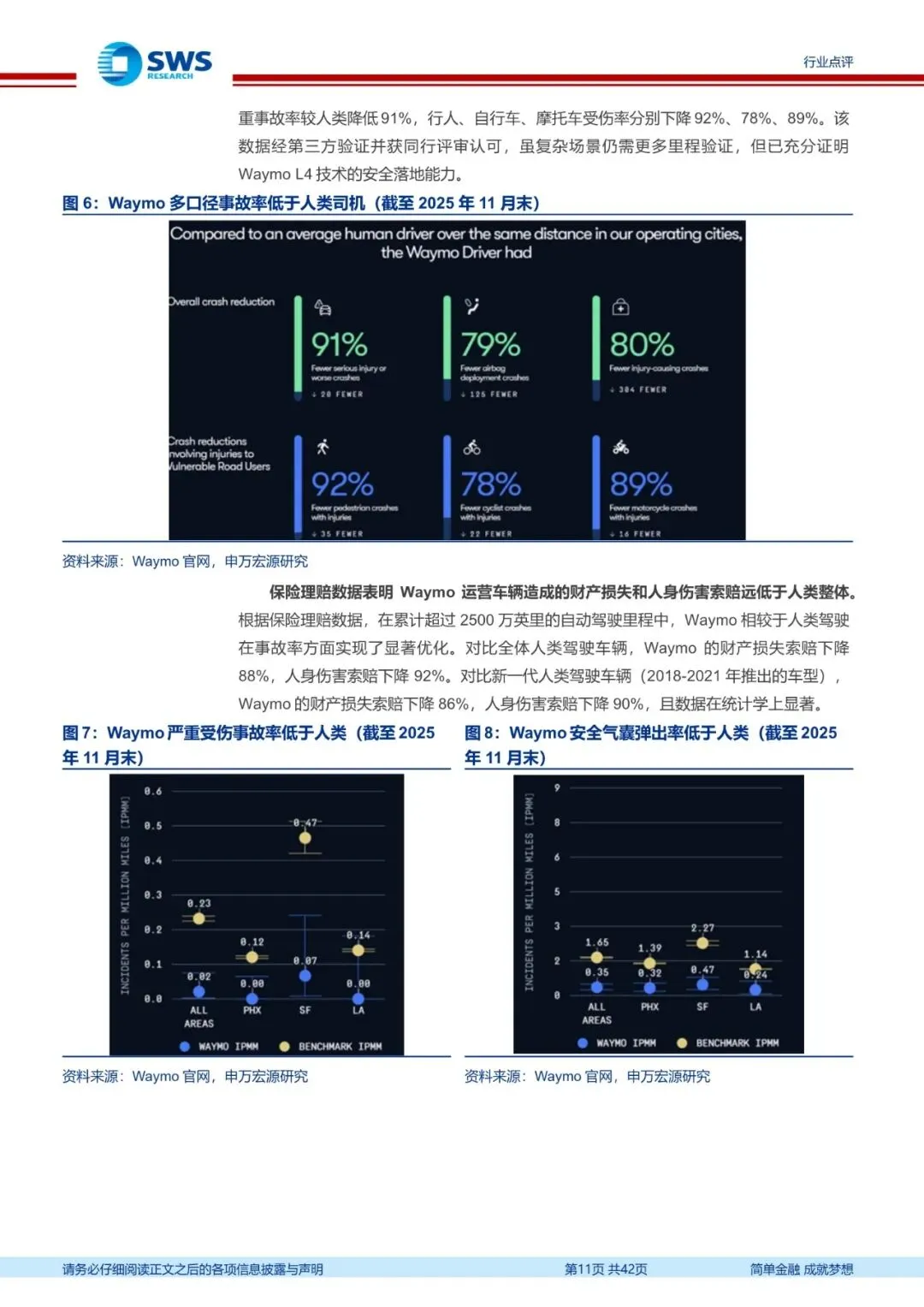 Robotaxi重塑出行行业:一场技术驱动的产业链重构。Robotaxi可通过L4级自动驾驶技术替代人力,降低网约车运营成本,抬升行业利润空间。当前无人驾驶技术路线已从早期多路径探索转向以多模态传感器融合+端到端学习为主流的技术收敛阶段,Waymo等企业验证了算法可靠性与场景泛化能力,事故率较人类驾驶员显著降低,验证了技术可行性,为商业化落地奠定基础。
