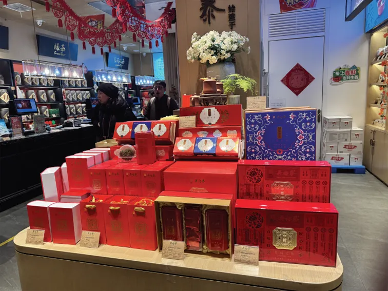 图为消费者在吴裕泰店内采购新年礼盒。