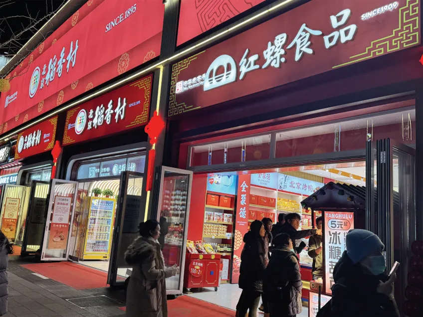 图为游客在“ 稻香村”“红螺食品”等老字号采购 。
