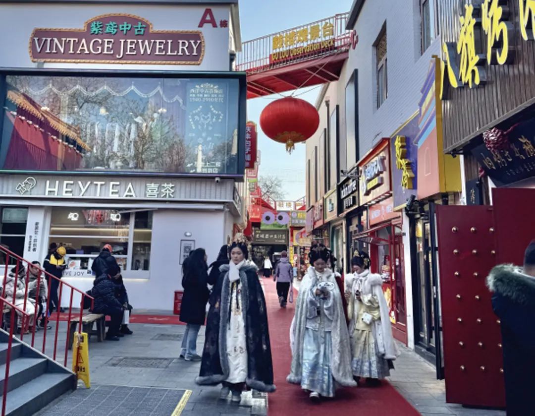 文化赋能让节日消费更添底蕴,南锣鼓巷的街道中,不少游客身着古装服饰漫步,沉浸式感受老北京的街巷韵味,传统文化与旅游消费的融合,让老街焕发新生机。