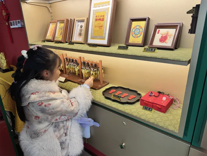 记者看到,在“黄瓦增福造办处(文创水饮店)” 内,金元宝、金钥匙等寓意吉祥的文创产品备受追 捧,游客们细细挑选,将“招财进宝”“开启好运”的 美好期许纳入囊中,文化消费的热度持续攀升。