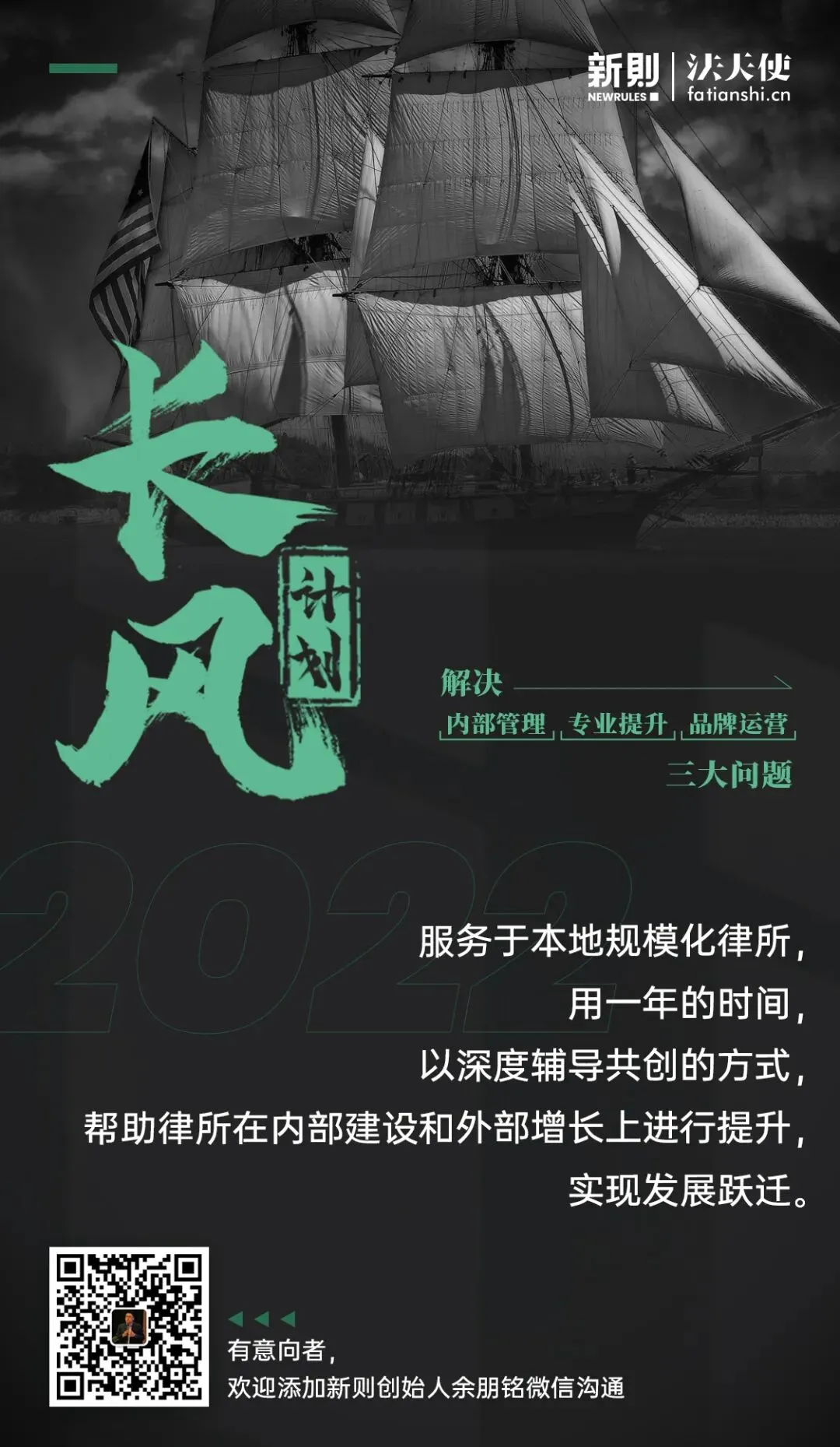欢迎各位对长风计划感兴趣的律所负责人,扫码与新则创始人大鱼直接沟通。