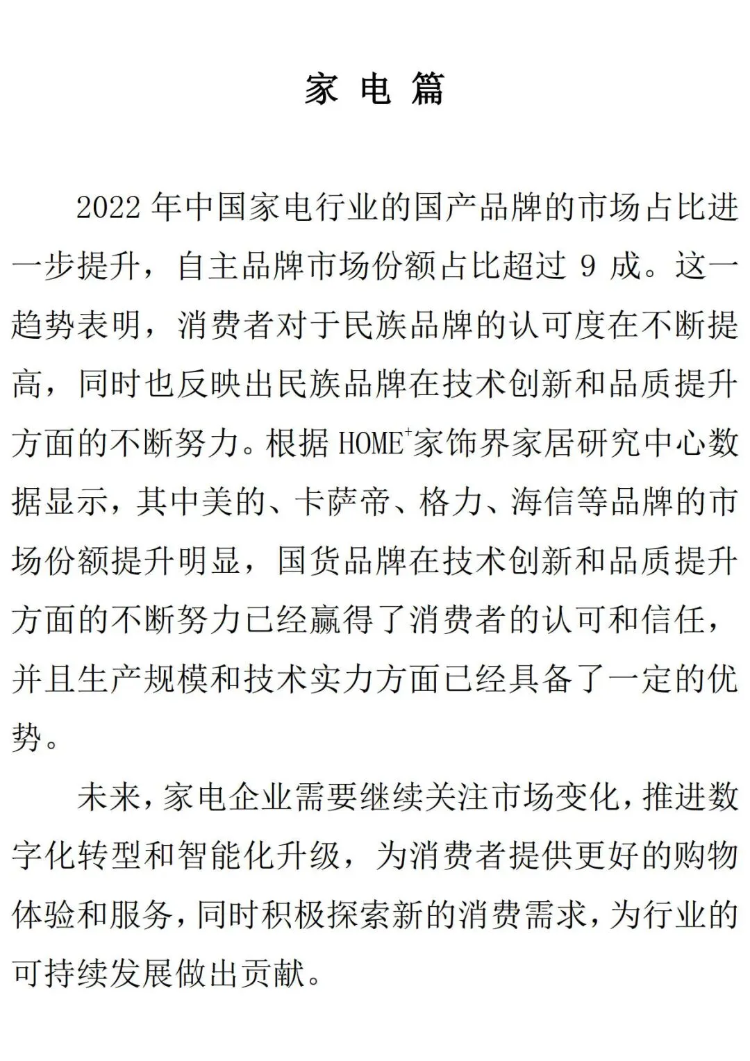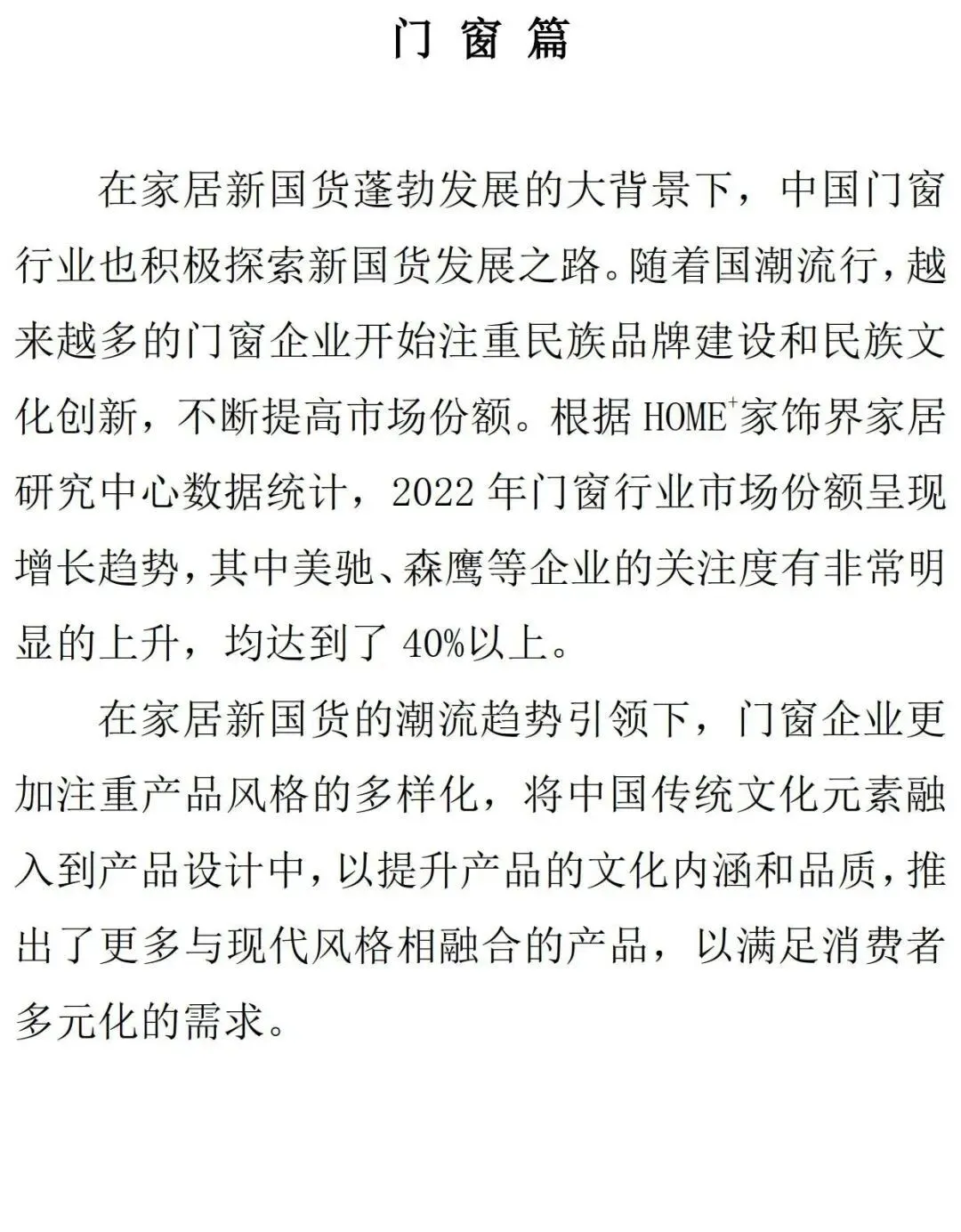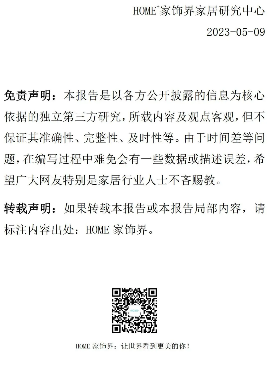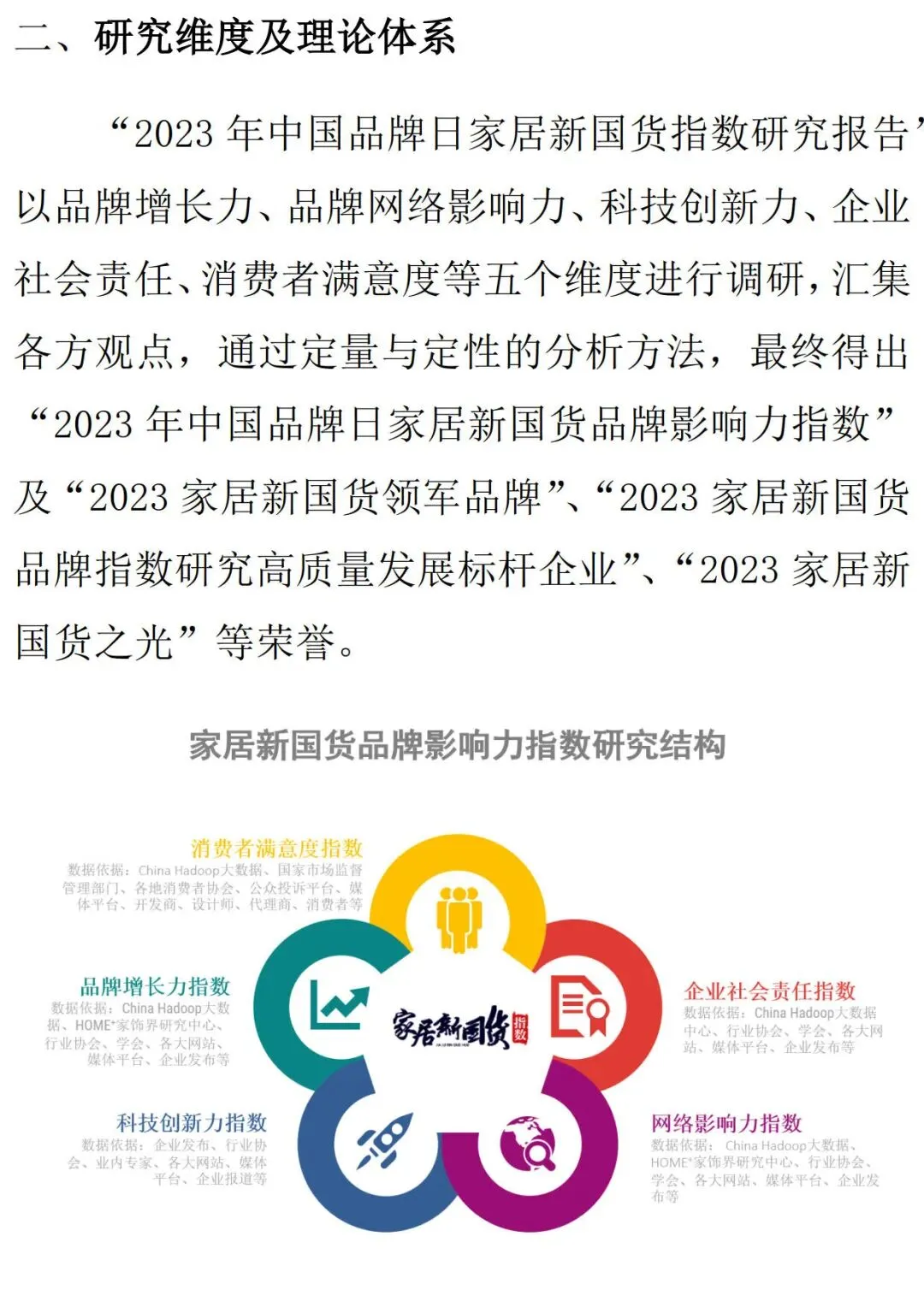 在当前国内市场消费日益多元化和个性化的背景下,当前家居消费市场逐渐迎来新格局,新一代消费者对国潮的推崇,以及中国经济内循环的蓬勃发展,都为国货品牌的崛起提供了肥沃的土壤。家居新国货头部品牌符合消费升级新趋势,在新市场机遇的推动下实现了快速跃迁,早已成为中国消费市场的中坚力量。在第三次新国货运动的浪潮下,经历过流量爆品、野蛮生长的新国货,如今转向了后端驱动、精耕细作。新国货的下半场,品牌要如何面对自己的供应链焦虑?要如何变流量为资产,变产品为品牌?在新消费场景、新贸易格局下,品牌又该如何抓住机会,打造自身护城河?这是家居新国货从业者们需要共同面对的课题。在5月10日第七个中国品牌日到来之际,为了更全面、客观、真实地选出具有核心竞争力的家居新国货品牌,HOME+家饰界家居研究中心历经半年的深入调研和全国范围内企业实地考察,在中国建筑材料流通协会的指导下,基于大数据,引入了可持续发展评估体系,由China Hadoop大数据提供数据研究支持及客观评估,最终发布《2023第四届家居新国货品牌指数研究报告》,并推出“2023家居新国货行业领军品牌”、“2023家居新国货指数研究高质量发展标杆企业”、“2023家居新国货国货之光”等荣誉表彰,旨在更好地助力消费领域企业提升可持续发展能力,深入探究国货品牌在家居领域的价值与前沿经验。一、行业分析