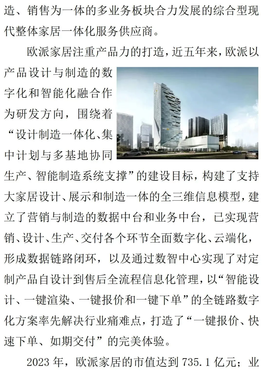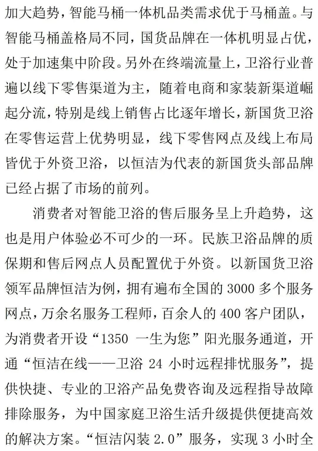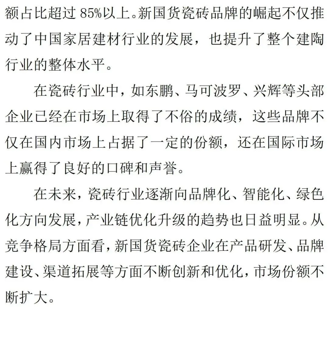 科技化:头部国货家居品牌依靠自身制造优势,不断加大科研投入,实现零部件自产替代,同时产品不断迭代,带给消费者较好体验。在卫浴行业,恒洁卫浴一直以来坚持智能智造的研发和投入,拥有包括智能产品在内的五大生产智造基地,总面积达六千多平方米的三大国家级创新研发中心,引领着国内智能卫浴的发展;在瓷砖行业,兴辉瓷砖一直在深化创新技术革命,拥有“广东省工程技术研究中心”、首家“现代轻奢瓷砖研发中心”和“自然感知实验室”。品牌化:为满足消费者一站式购物需求,行业掀起大家居风潮,头部国产品牌内部孵化、外延并购齐发力,形成多档次、多风格、全品类的多品牌矩阵,并且通过搭建DTC数字化中台精准触达客户需求、高效调配前中后台资源、提升多品牌运营能力。智造化:以欧派等为代表的国货定制家居品牌持续发展柔性化、自动化生产能力,借助大数据、信息化软件,将尺寸不一的各类柜体,通过自动组合、运算、排版,出具最佳切割方案,解决机械制造高自动化与家居产品定制化需求之间的矛盾,不断提升运营效率,强化企业竞争力。3、降本增效提升性价比,全方位构筑竞争优势