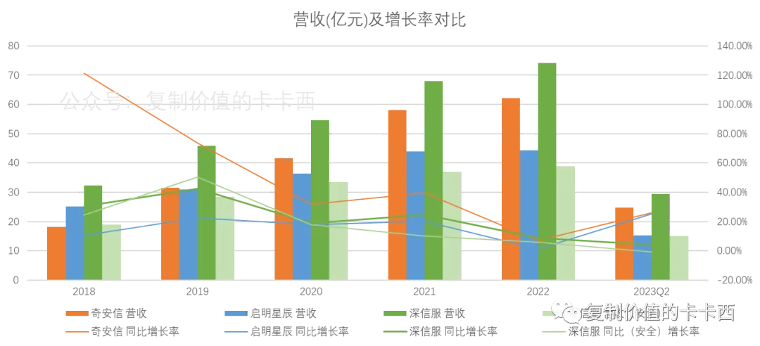 营收规模——三家的营收规模深信服(总体)>奇安信>启明星辰