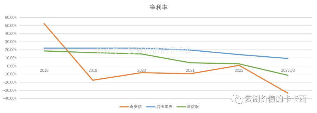 成长速度——奇安信>启明星辰>深信服,目前深信服增长速度明显下降,截至2023Q3也没有明显复苏的迹象。