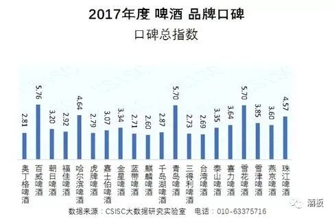 综合运用网媒、电商、论坛等网络数据,通过品牌知名度、企业美誉度、品牌健康度、质量认可度、产品好评度、消费者互动度等六个维度对这20个啤酒品牌进行了品牌口碑指数评价,形成了《2017年度啤酒品牌口碑研究报告》(以下简称“报告”)。