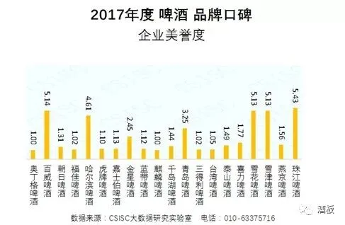 企业美誉度:珠江啤酒、百威啤酒、雪津啤酒品牌在企业美誉度中位居前三。