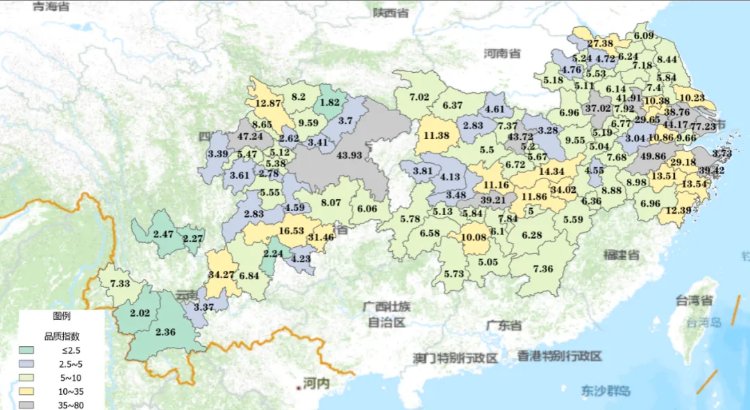 三、 长江经济带城市品质分布