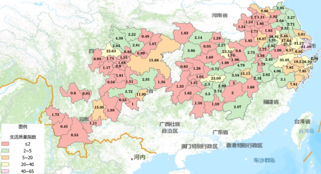 四、长江经济带城市生活质量分布