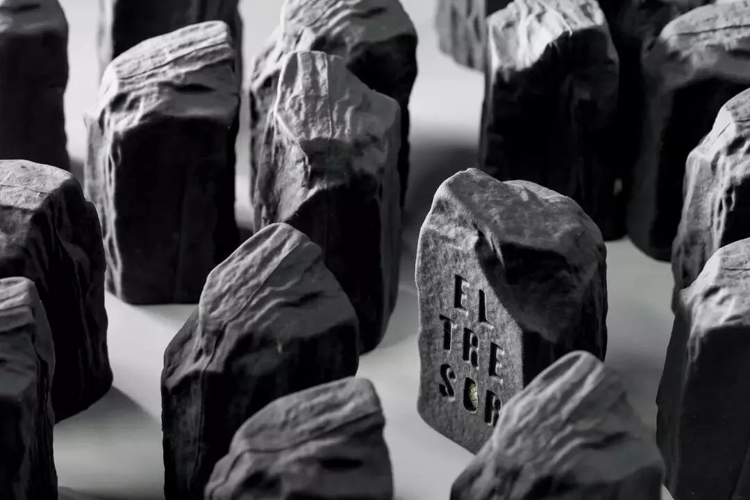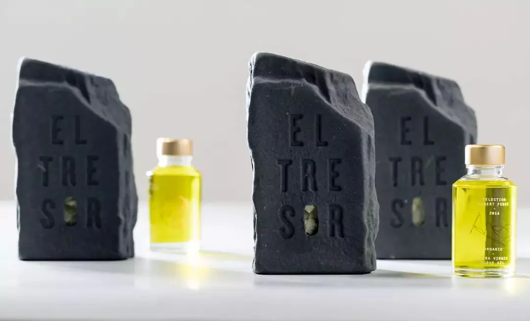 外包装制作模型选择仿照橄榄树下的石头制作,其原材料用纸浆故意制造出粗糙感,既不会造成污染,同时也传达给消费者原生态的多重感受。