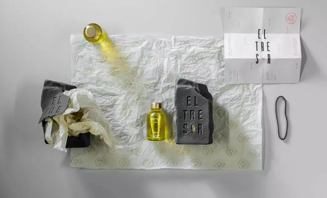 一个掘金者,寻找、挖掘、探索,是永不会停止的过程,最后终呈现在消费者面前的是用橡皮筋将丝绸纸和透明玻璃纸连在一起的橄榄油宝藏。明亮,光滑,鲜艳的橄榄油颜色,与拆开之前的阶段形成了鲜明的对比。