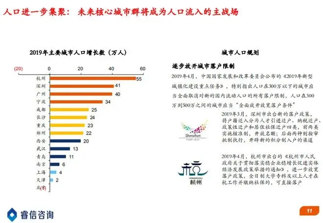 对人口来讲,未来核心的城市群将成为人口流入的主战场。我们也统计2019年主要的城市像杭州、深圳、广州、宁波、成都这样的城市,实际上是处于前列,基本上处于前五。当然一线城市里,北京在做人口疏解。所以,整体的人口增长实际上是一个负值,但总体来讲,下一步人口,尤其是户口政策的放开将加速整个核心经济中心城市的人口增长,在这样趋势下,其实环渤海、长三角、珠三角和成渝经济圈、武汉中部经济圈这样一些区域房地产市场的长期趋势会更加明显。当然,我同时也认为在中短期内,对于一些总体人口,虽然是流出的一些省份,但对于它核心城市的人口数量依然是增加的。那么,这样的市场也是可以进入的。