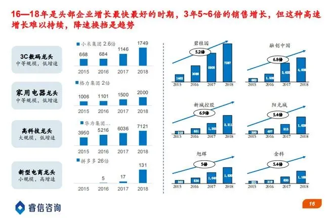 我们统计了一些头部的企业,我在去年统计时,觉得很有意思。16-18这3年的是头部企业增长最好的时候,3年5-6倍的销售增长,这是历史上从来没有的。