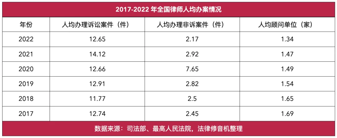 人均办理非诉案件=律师办理非诉案件量÷全国律师人数