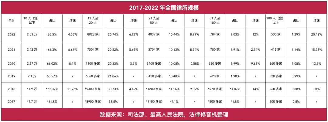 「规模化」趋势缓慢发展,中小律所仍是中国律所主体