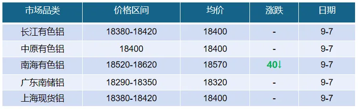 9月7日各大铝市场最新调价汇总(单位:元/吨、含税)