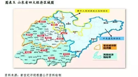 从各经济区域的发展规划看,山东半岛蓝色经济区主要发展海洋经济;省会城市群经济圈主要依托省会城市优势带动周边地区发展;黄河三角洲高效生态经济区主要发展高效和循环经济;西部经济隆起带主要致力于打造能源化工、生物医药、机电制造、农产品加工、商贸物流等产业基地。