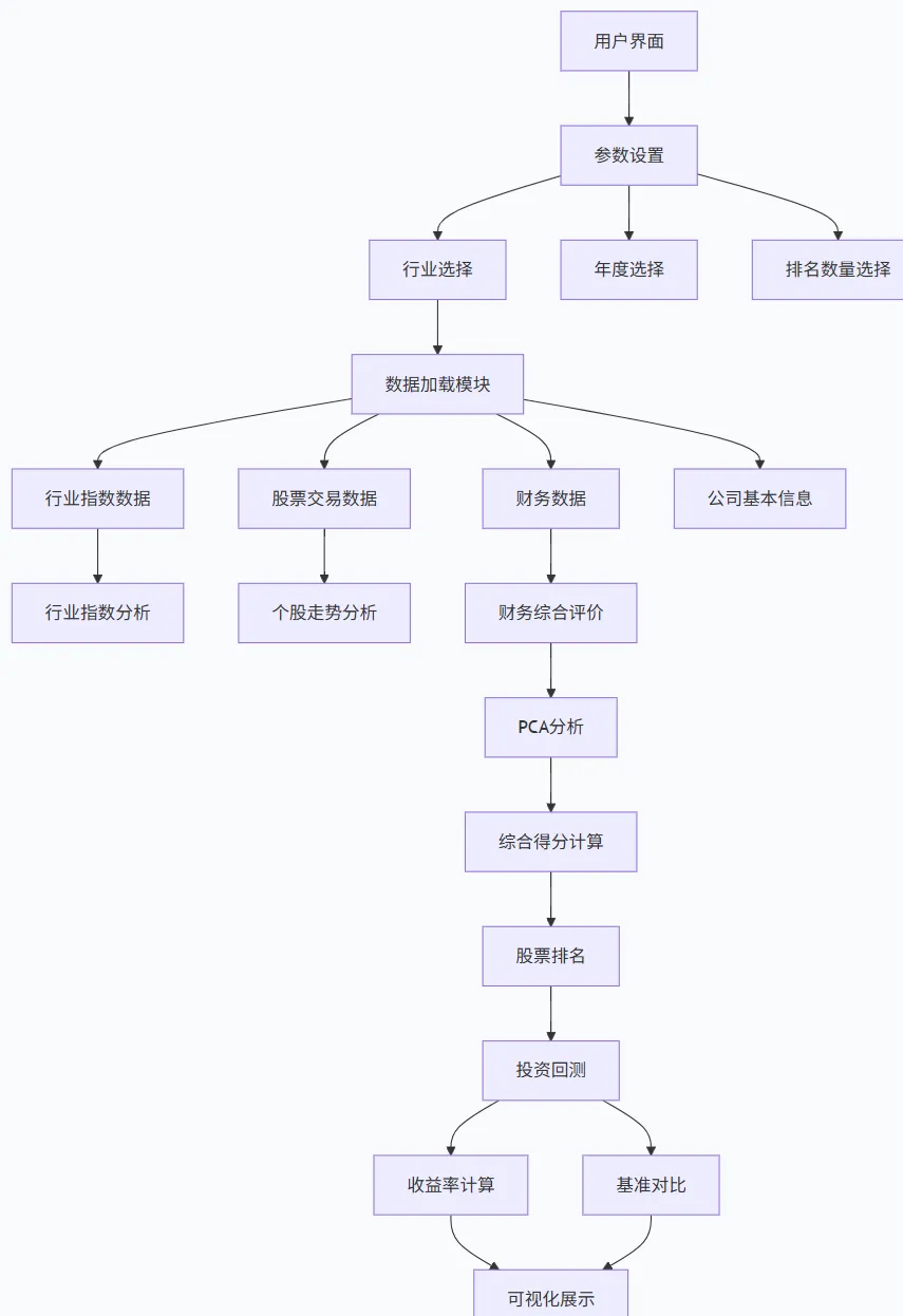 st_fig函数构建。该函数首先设置页面配置,包括页面标题和布局。然后,在侧边栏提供参数设置选项,包括行业选择、年度选择和排名数量选择。主内容区域根据用户选择的参数,依次展示原始数据、行业指数分析、个股分析、综合评价与投资回测结果。在展示过程中,使用了Streamlit的多种组件,如标签页、指标卡、展开器等,以增强用户交互体验。def st_fig():# 设置页面配置st.set_page_config(page_title="申万行业数据分析平台",layout="wide",initial_sidebar_state="expanded")# 侧边栏参数设置with st.sidebar:st.markdown("## ? 参数设置")nm = st.selectbox("选择申万一级行业", nm_L, key="industry_select")year = st.selectbox("选择分析年度", [2024, 2023, 2022], key="year_select")rank = st.selectbox("选择排名数量", [5, 10, 15, 20], key="rank_select")