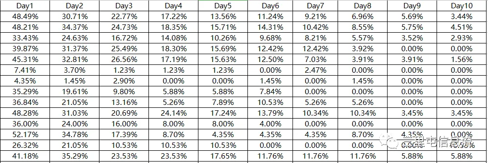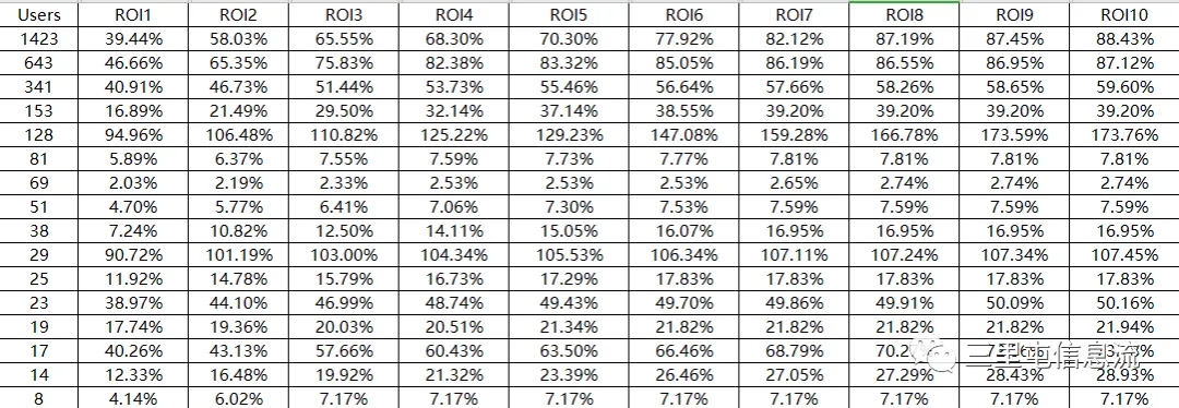 那假设首日roi 50%,则次日roi=(50*0.4+50)70%,3日roi(70*10%+70)77%,4日roi80.85%,5日roi82.5%,7日roi最高89.1%回不来。