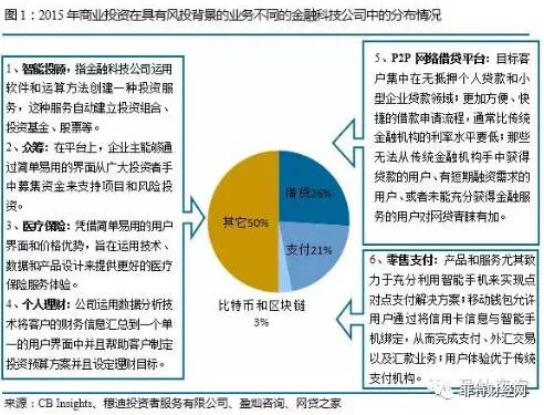 根据报告,Fintechs包括:网络借贷平台、零售支付,智能投顾、众筹、医疗保险、个人理财以及虚拟货币等(参见图1)。