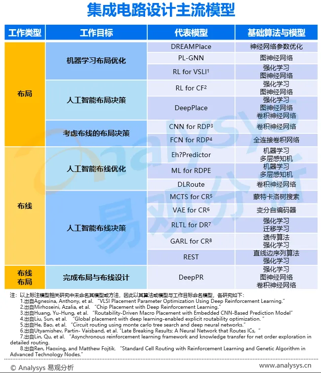 与分子发现相比,集成电路设计的产业应用场景较为简单,通常作为电子设计自动化(EDA)软件功能的一部分用于芯片产业的设计环节。由于芯片设计的高度复杂性,芯片设计公司应用人工智能集成电路设计模型已经成为必然。