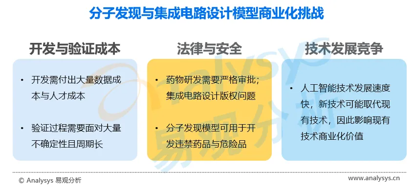 人工智能领域的技术发展非常迅速,分子发现和集成电路设计模型也需要不断创新和提升,以应对竞争压力。同时,商业化的过程中还需要考虑技术的成本和效益。从历史来看,在分子发现和集成电路设计模型的早期,也被诟病其效率不足以替代计算驱动的研发范式,而之后随着人工智能技术的发展,目前的分子发现和集成电路设计技术也有可能被更新的技术取代,这也是商业化过程中的一个重要挑战。