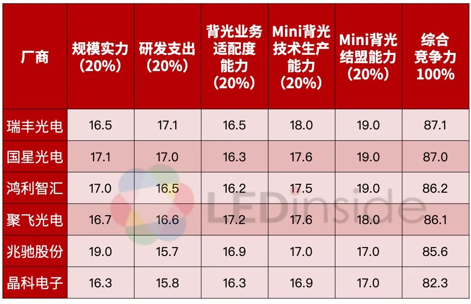 中国大陆Mini LED背光封装企业竞争力分析——LEDinside