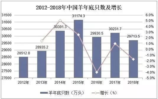 近年来受国家政策的影响,部分地区出现了限养,中国羊年底只数下降,2018年下半年,羊肉价格波动,羊养殖虽然向好,但是饲养量下降至29713.5万头,其中山羊13574.7万头,绵羊16138.8万头。