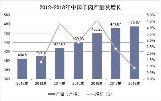 产量方面,据统计,截至到2018年,中国羊肉产量增长至475.07万吨,同比增长0.8%。