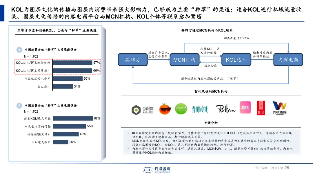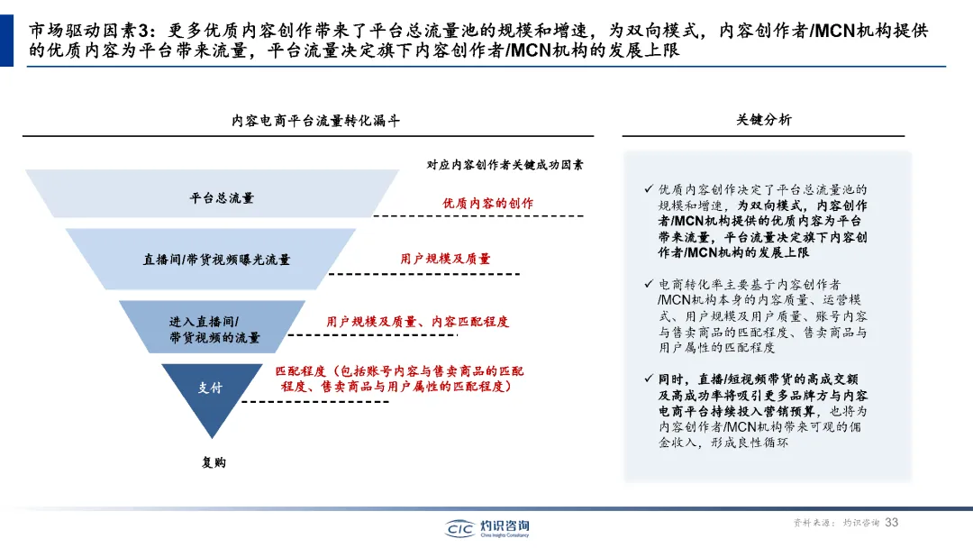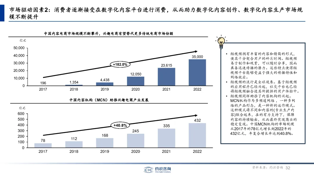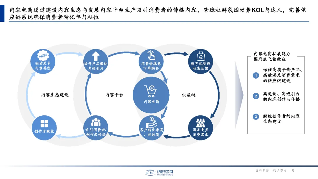 内容电商崛起已成为电商领域的新风口。内容电商通过整合内容和电子商务的商业模式,为消费者提供更多关于产品的信息,呈现了丰富的购物体验。内容电商的核心理念是通过内容营销和社交互动来提升消费者对产品的认知和信任度,从而促进购物转化。短视频平台的崛起,圈层文化的流行,MCN机构的发展,高号召力和粘性,都为内容电商的快速发展提供了有力支持。