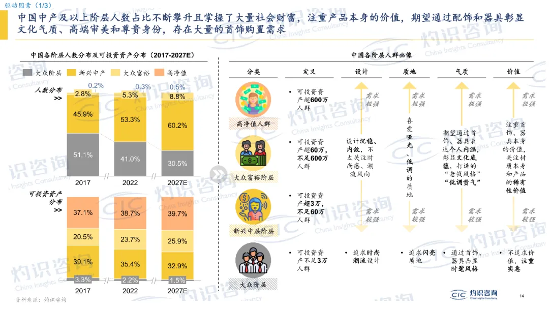 •25-34 岁成消费主力:2023 年中国内地金店消费的最大群体是 25-34 岁人群,他们更看重产品的 “情感价值” 和 “内在设计”,而非单纯的材质价值。