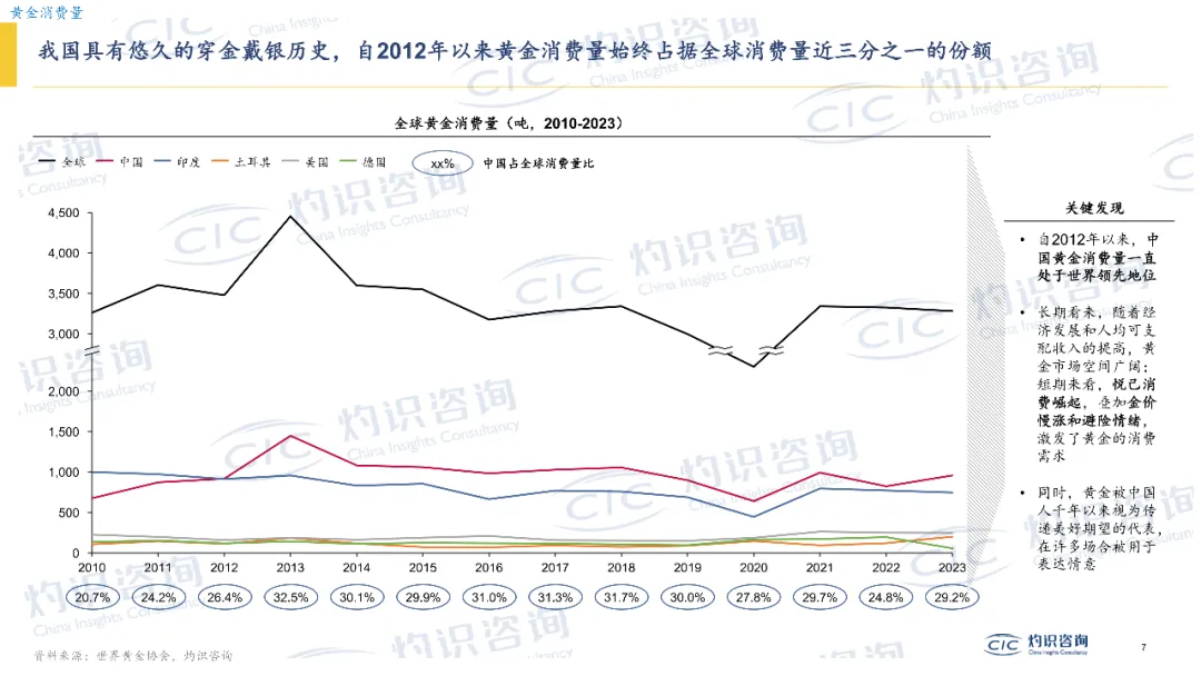 先看一组硬核数据:自2010 年起,中国黄金消费量始终占据全球近 1/3 份额,是名副其实的“黄金消费第一大国”。这一地位背后,是行业规模的持续扩容: