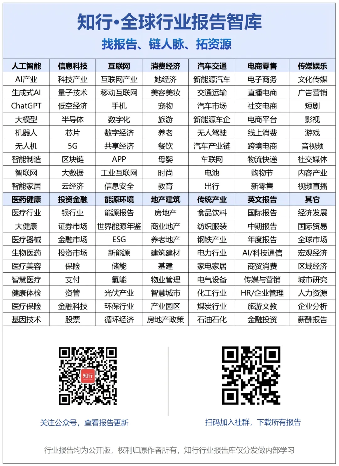 行业报告均为公开版,权利归原作者所有,知行行业报告库仅分发做内部学习