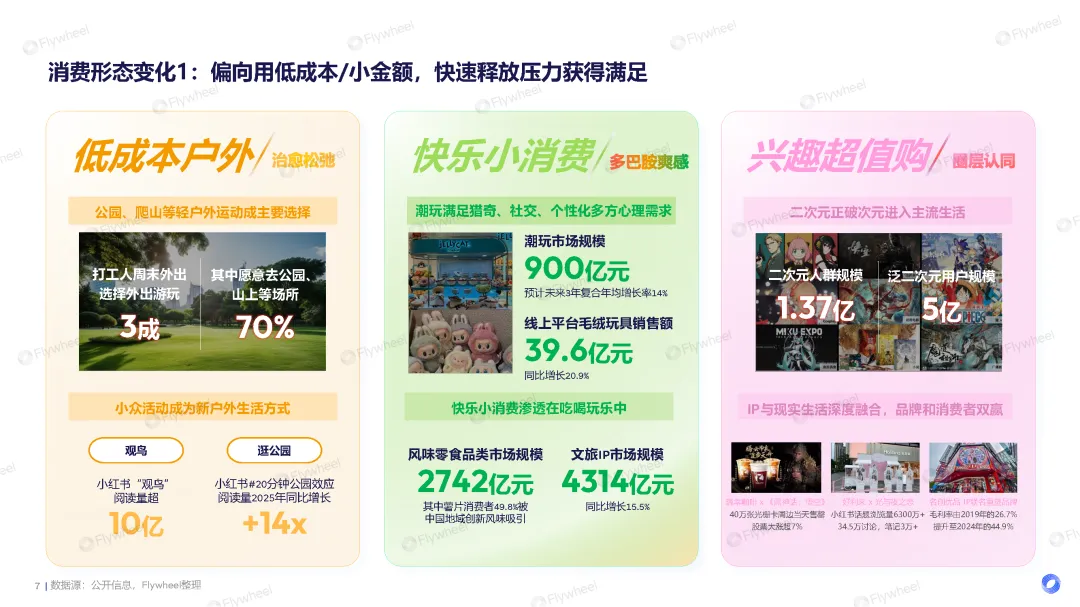宏观经济增长平稳但需求饱和的背景下,具体的消费行为分化为两大形态:“情绪快充”与“长效定心”。消费者一方面倾向于通过低成本的方式快速获得满足;另一方面将更多资源投入于健康、知识和未来保障。