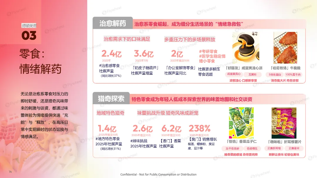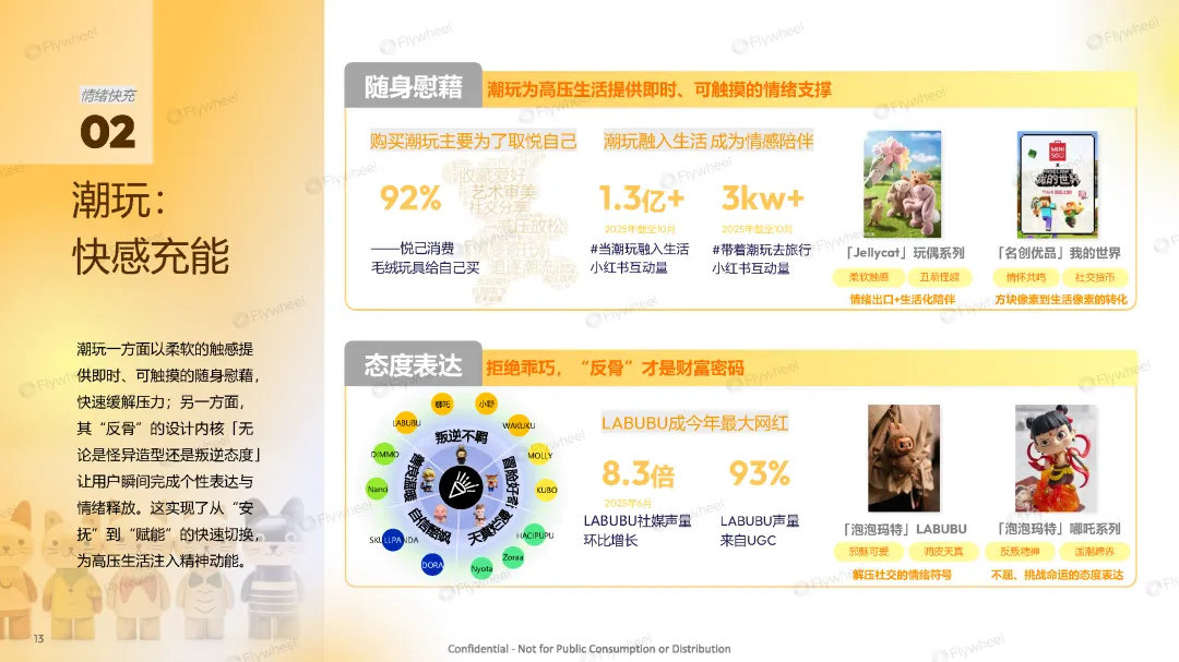 “情绪快充”涉及品类趋势:彩妆(即时鲜活)、潮玩(快感充能)、零食(情绪解药)、饮料(精神碳水)