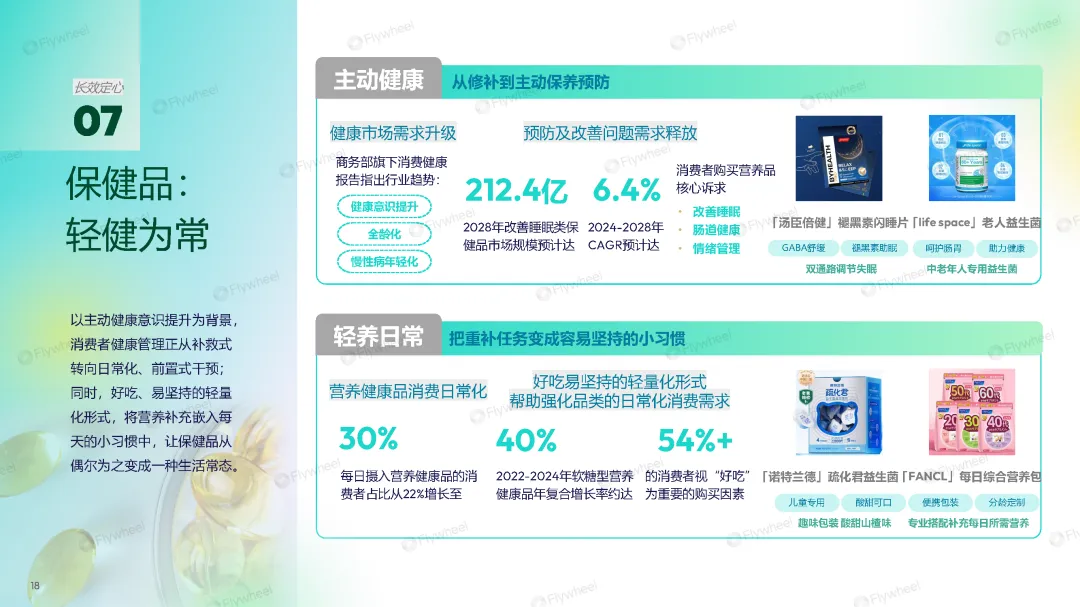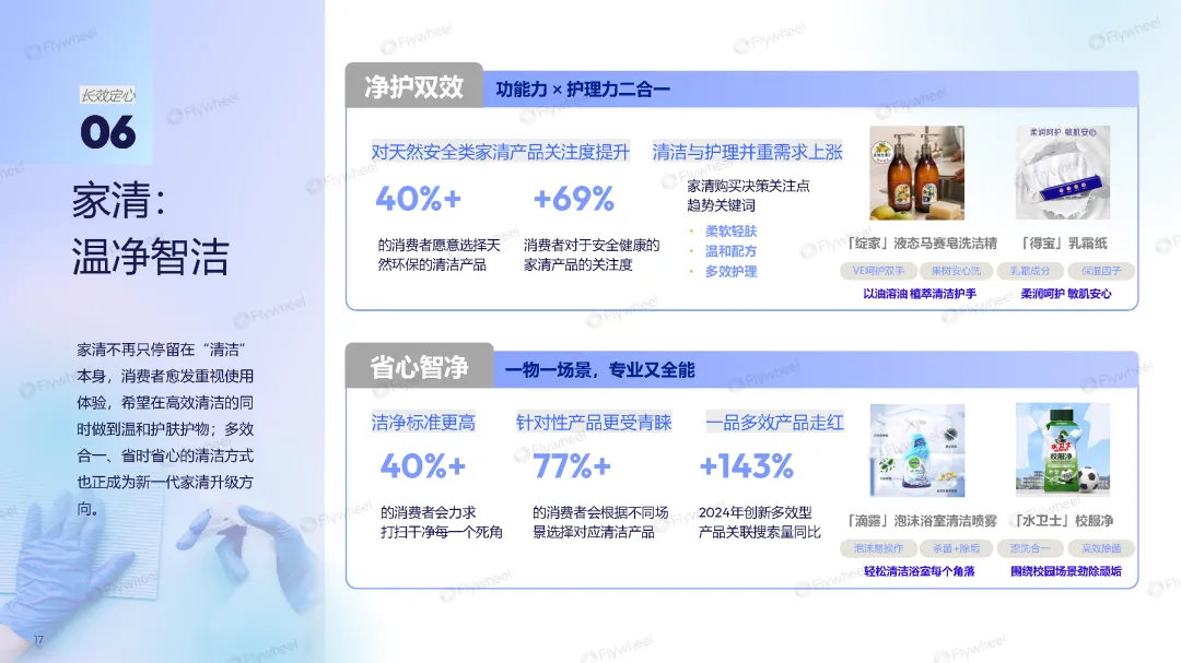 “长效定心”涉及品类趋势:护肤(肤本精养)、家清(温净智洁)、保健品(轻健为常)、母婴(长线精养)、宠物(智愈共生)、运动户外(趣野常伴)