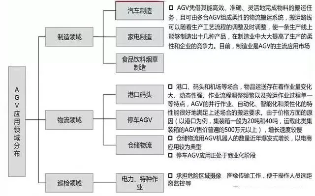 目前中国AGV机器人的需求旺盛,需求领域较为集中,AGV在生产制造、物流、巡检等行业的应用日益广泛。目前汽车行业、家电制造等生产制造领域仍是中国AGV主要需求市场。两大行业对AGV需求稳定,但对于产品智能自动化等要求越来越高。