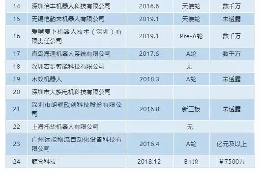 2018年爆发式的增长还是归咎于中国物流的爆发浪潮,面对这样的百亿市场空间,先不说阿里、苏宁这样的国内龙头企业投身智能物流体系建设中,众多国内产业公司也纷纷入局。比如:Geek+、水岩科技、马路创新、旷视科技、仙知机器人、快仓、海康威视等一众明星公司。