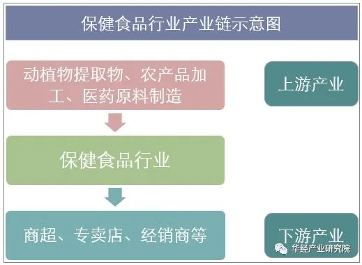 保健品行业产业链上游是各种原材料生产商,主要包括动植物提取厂商、化工原材料生产厂商及部分制药厂等。下游是流通领域的各种渠道,主要包括药店、医药公司、连锁店和电商平台等。作为中游的保健品生产企业主要负责生产加工和包装等。
