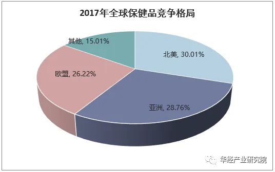 目前,北美仍是全球最大的保健品市场,占全球市场的30.01%,亚洲保健品市场近年来发展迅猛,已超过欧洲,占全球市场的28.76%,欧洲占26.22%。