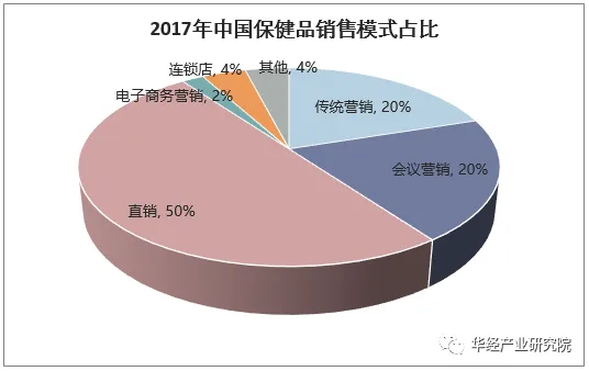 中国市场中,保健品的销售可分为直销/会销,经销/代理商,终端销售,网络销售四种模式。目前直销占比最多,约50%,线上销售占比仍较小。消费者普遍相关专业知识不足、对产品质量存在担忧、对产品宣传不信任等问题,因此目前在中国保健品市场线下的直销、会议营销仍为主流营销模式。