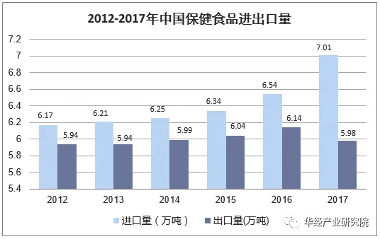 2017年我国保健食品进口量达到7.01万吨,出口量为5.98万吨。近年我国制成品的进口额占据保健食品总进口额的一半左右,我国的营养保健食品行业发展大有可为。