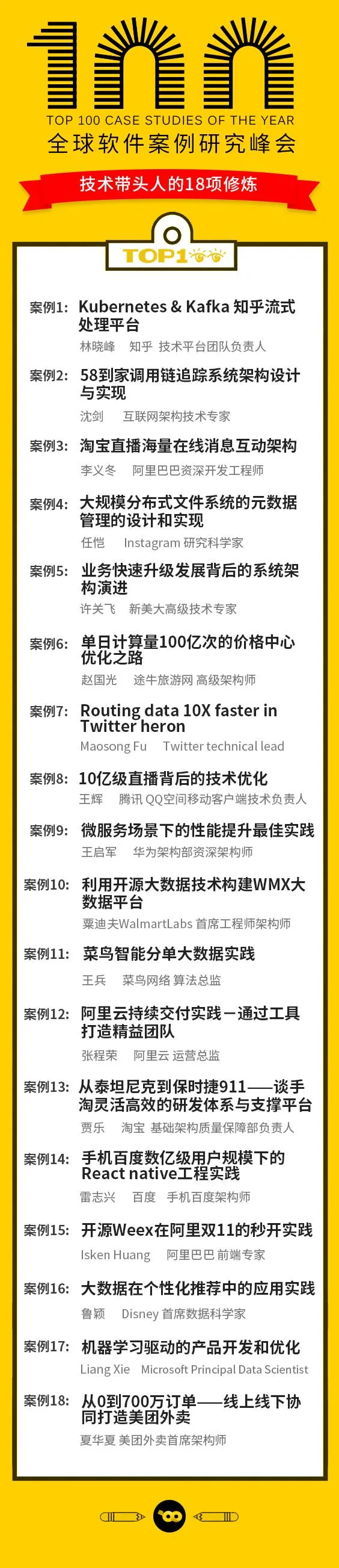 TOP100summit是科技界一年一度的案例研究峰会,每年甄选有学习价值的100个技术创新/研发管理实践,分享他们在本年度最值得的总结、盘点的实践启示。