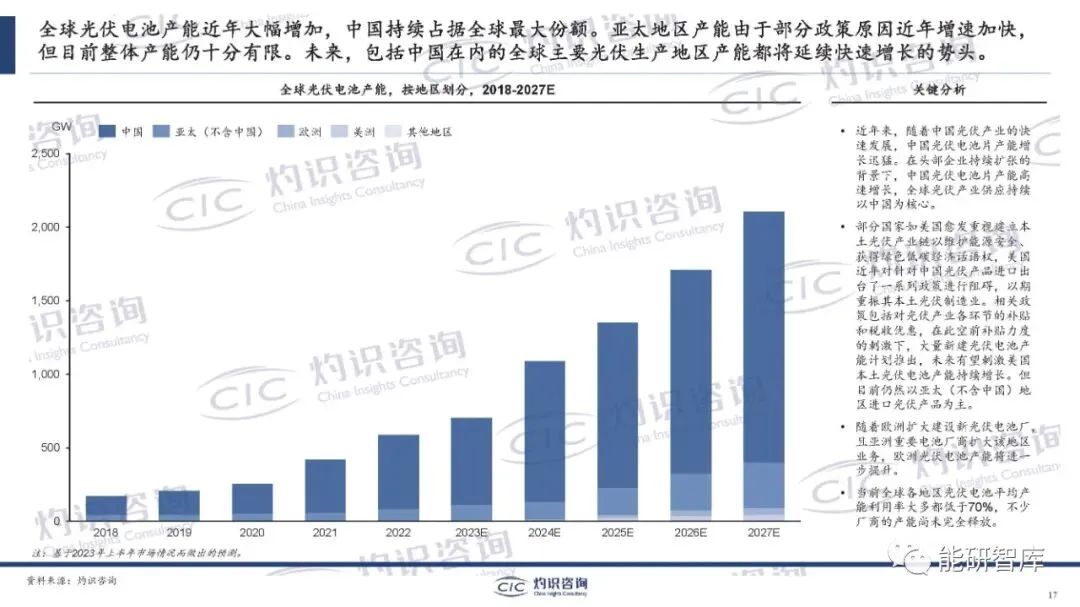 2023年11月,灼识咨询发布《全球光伏电池片行业蓝皮书》,在此分享给大家,欢迎转发扩散!ERR能研微讯2024年情报征订工作开催,需要请点击上栏—能源情报服务了解。