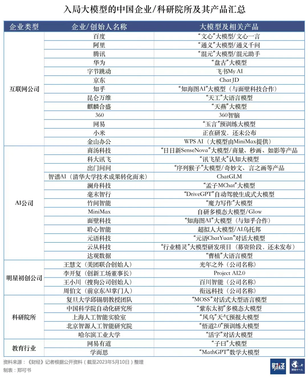 此后不到两个月的时间内,阿里巴巴、腾讯、华为、字节跳动等大厂也已经推出大模型相关产品。AI公司们也都将重心转向大模型,一些新兴的AI公司崭露头角,估值飙升。