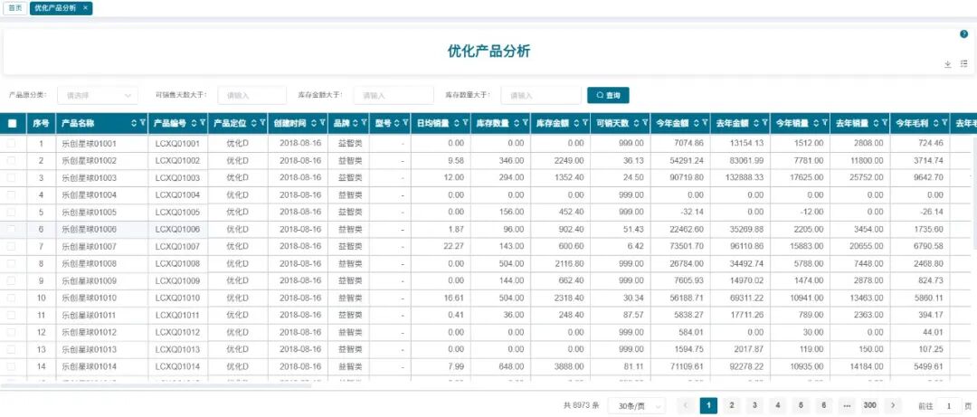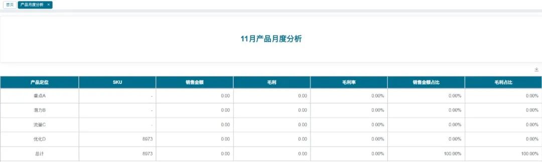 显示当年新品的业绩贡献和销售详情。宏观关注新品上新情况,及时定位销售不佳的新品,调整上新选品策略。