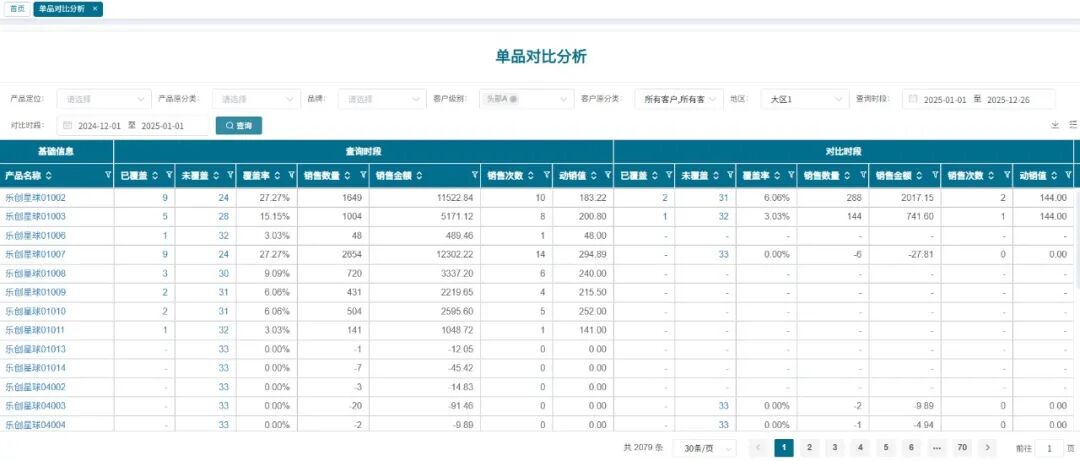 ▪示例:“产品变动分析” 显示,潜力产品(低销高毛利)X 型号本月销量仅 50 件,对比 “单品覆盖分析” 发现,该产品在核心客户中的覆盖率仅 10%,远低于重点产品的 60% 覆盖率。