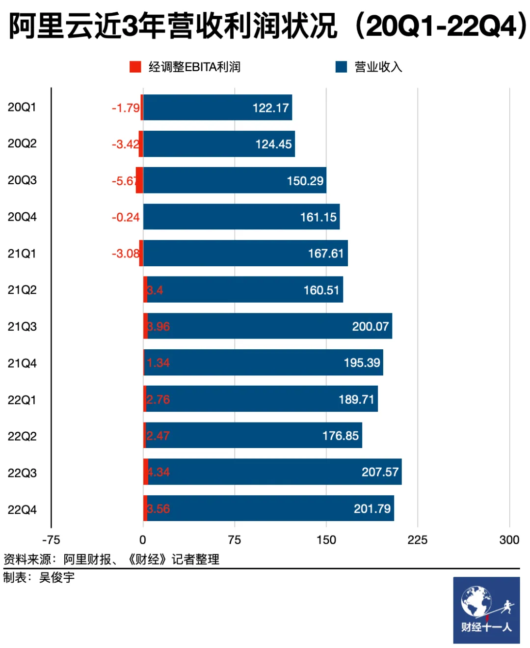 2022年底,张勇兼任阿里云智能总裁后发出内部信,将新年关键词定为“进”,希望在中国云市场整体逆风的情况下解决体系化“进”的问题。2022年阿里云全年营收775.9亿元,较2021年同比增长7.0%。经调整过后的EBITA利润13.1亿元,经调整过后的EBITA利润率为3.0%。